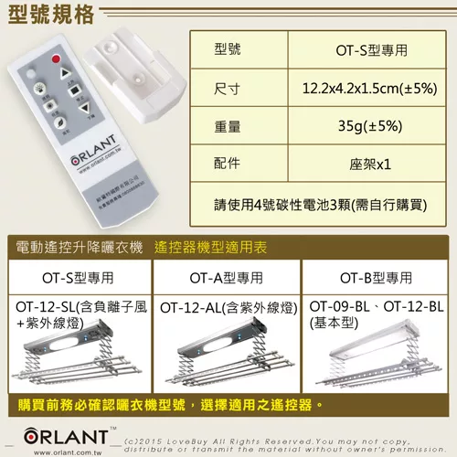 【歐蘭特 ORLANT】電動遙控升降曬衣機_專用數碼遙控器(OT-S型專用)我是在這邊買的,如果你也想買可以到這買